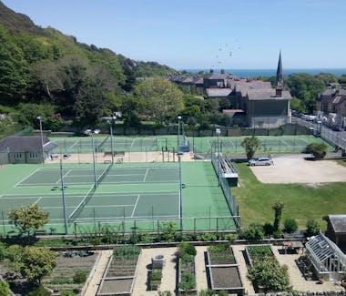 Nestled amidst the enchanting Mediterranean Holme oak forest, Ventnor Tennis Club settled into the slopes of St. Boniface Downs to the north, offering a picturesque setting for tennis enthusiasts. Boasting four courts, the club provides glimpses of the charming town below and the glistening sea to the south.